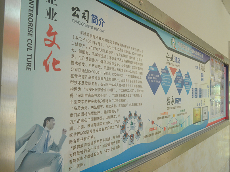 公司擁有河源、深圳、成都等專業(yè)制造工廠、配備模具、注塑、模切等生產(chǎn)一條龍供應(yīng)鏈,公司現(xiàn)總?cè)藬?shù)600人,公司工控、車載背光源產(chǎn)品占有一定市場份額,獲得國家認(rèn)可的高新技術(shù)企業(yè)。目前公司已進(jìn)入高尖科技研發(fā)、中國制造的行業(yè)。